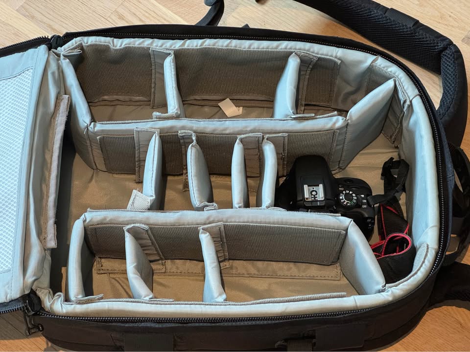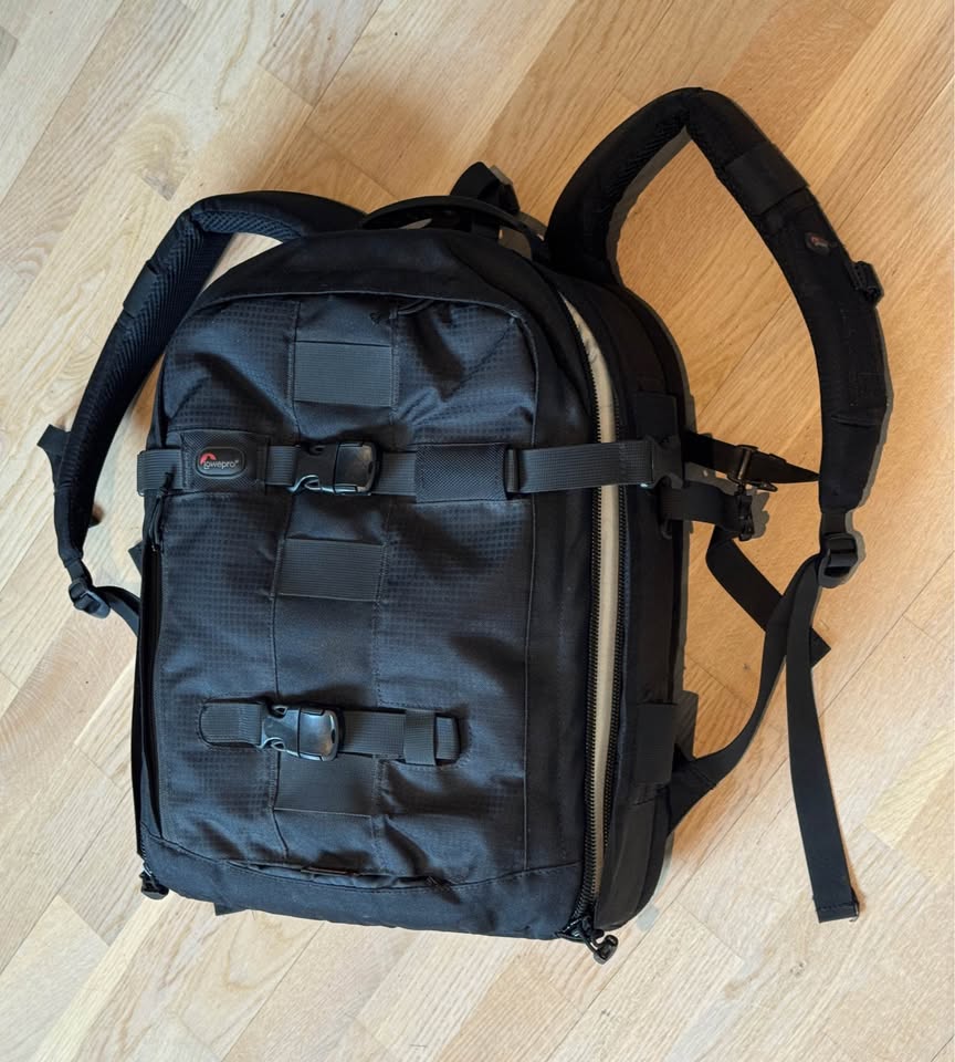 Müün Lowepro Pro Runner 350 AW musta kaameraseljakotti – professionaalne mudel, mis mahutab peegelkaamera (DSLR) koos kinnitatud objektiiviga (nt 70-200mm), 4–5 lisaobjektiivi, välklambi ja lisavarustust. Kohandatav polsterdatud sisejaotus, kiire ligipääs, All Weather (AW) kate, rinnarihm ja vastupidav konstruktsioon. Heas seisukorras, väga vähe kasutatud.