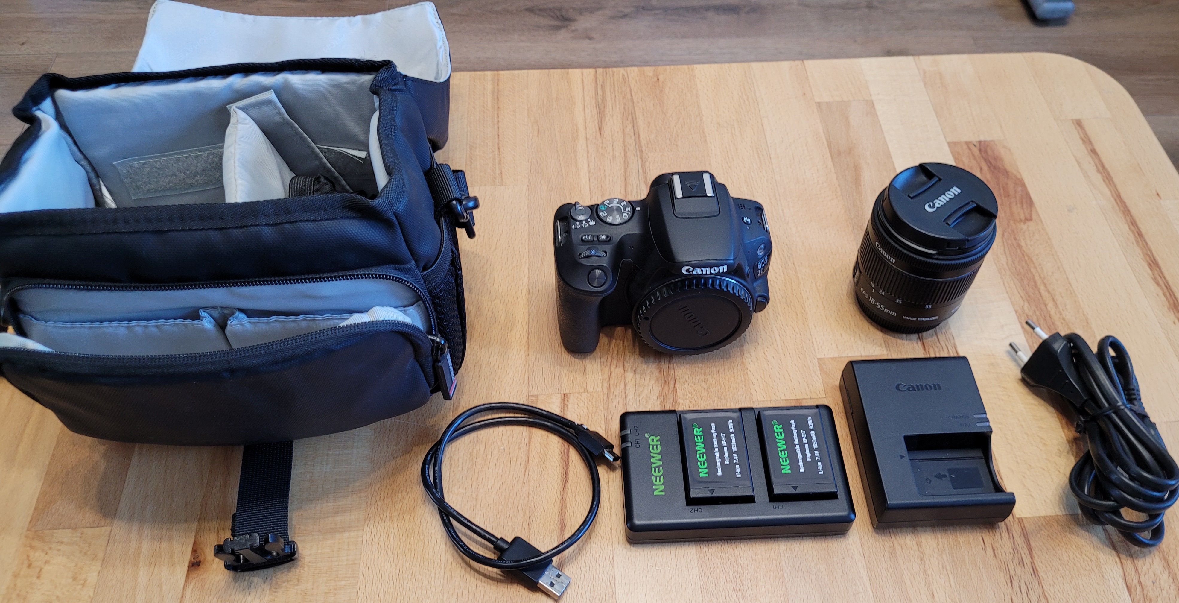 Canon 200D + 18-55mm IS STM f/4-5.6 + 2x Neewer LP-E17 batteries