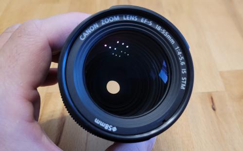 Canon 18-55mm IS STM f/4-5.6 lens (silent focusing motor, suits well for vlogging)